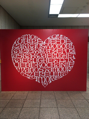 하트 안에 쓰여진 글씨는 세계 12개국의 '사랑'이란 단어가 적혀 있다고 하는데