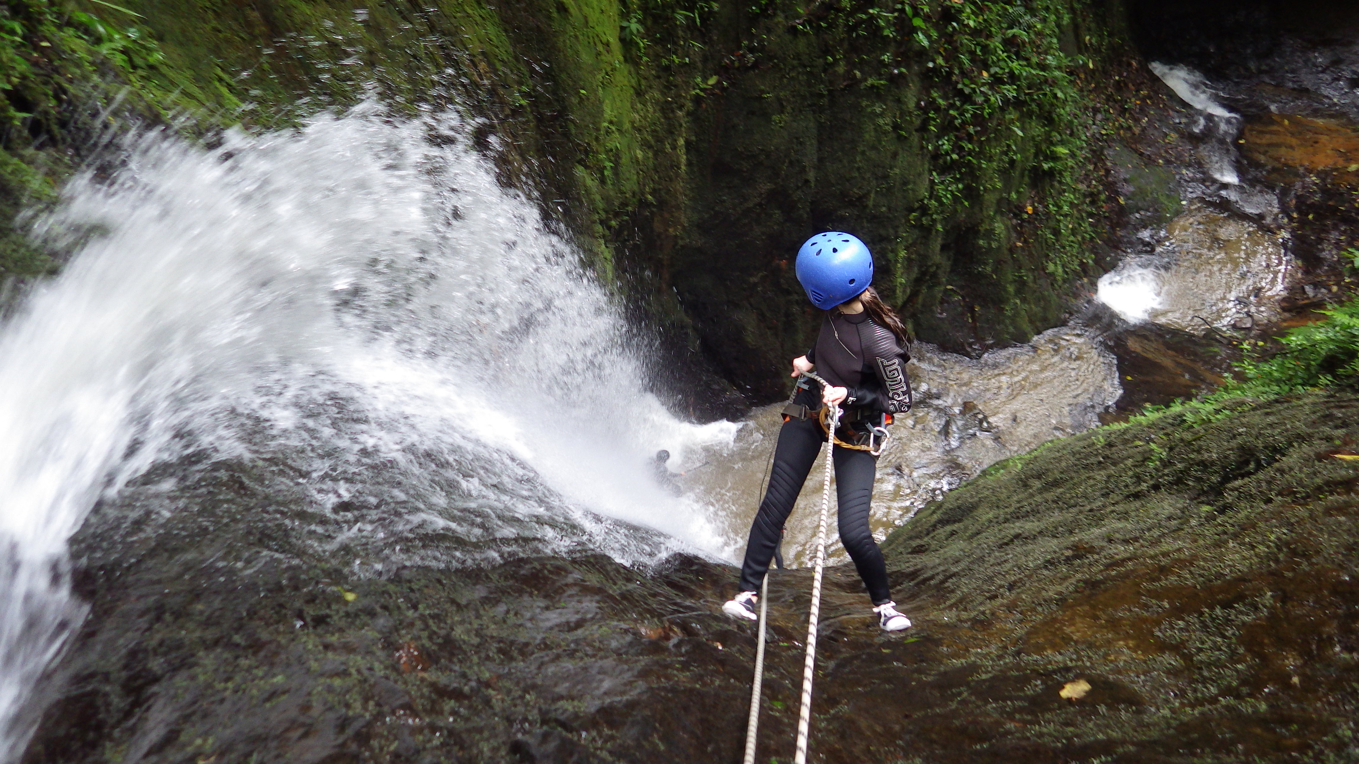 제가 정말 강력히 추천하는 액티비티! 캐녀닝. 산을 오른 후 줄에 매달려 폭포를 내려오는 긴장감 넘치는 액티비티입니다.