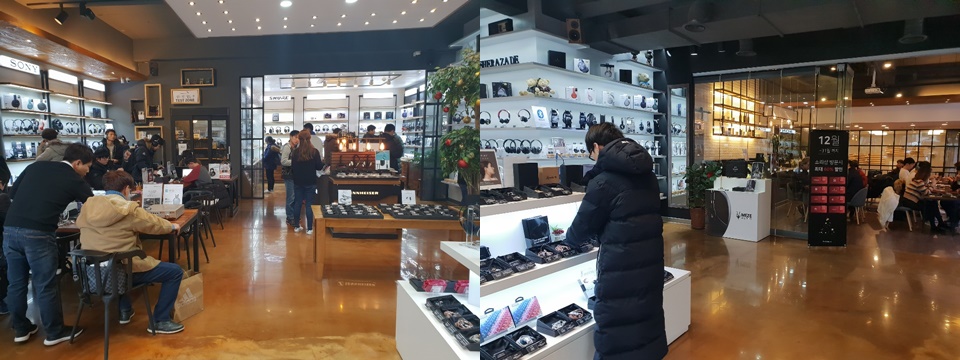 청음 샵에선 자신이 듣고 싶은 이어폰, 헤드폰, 스피커 등 음향기기를 무료로 들어볼 수 있습니다.