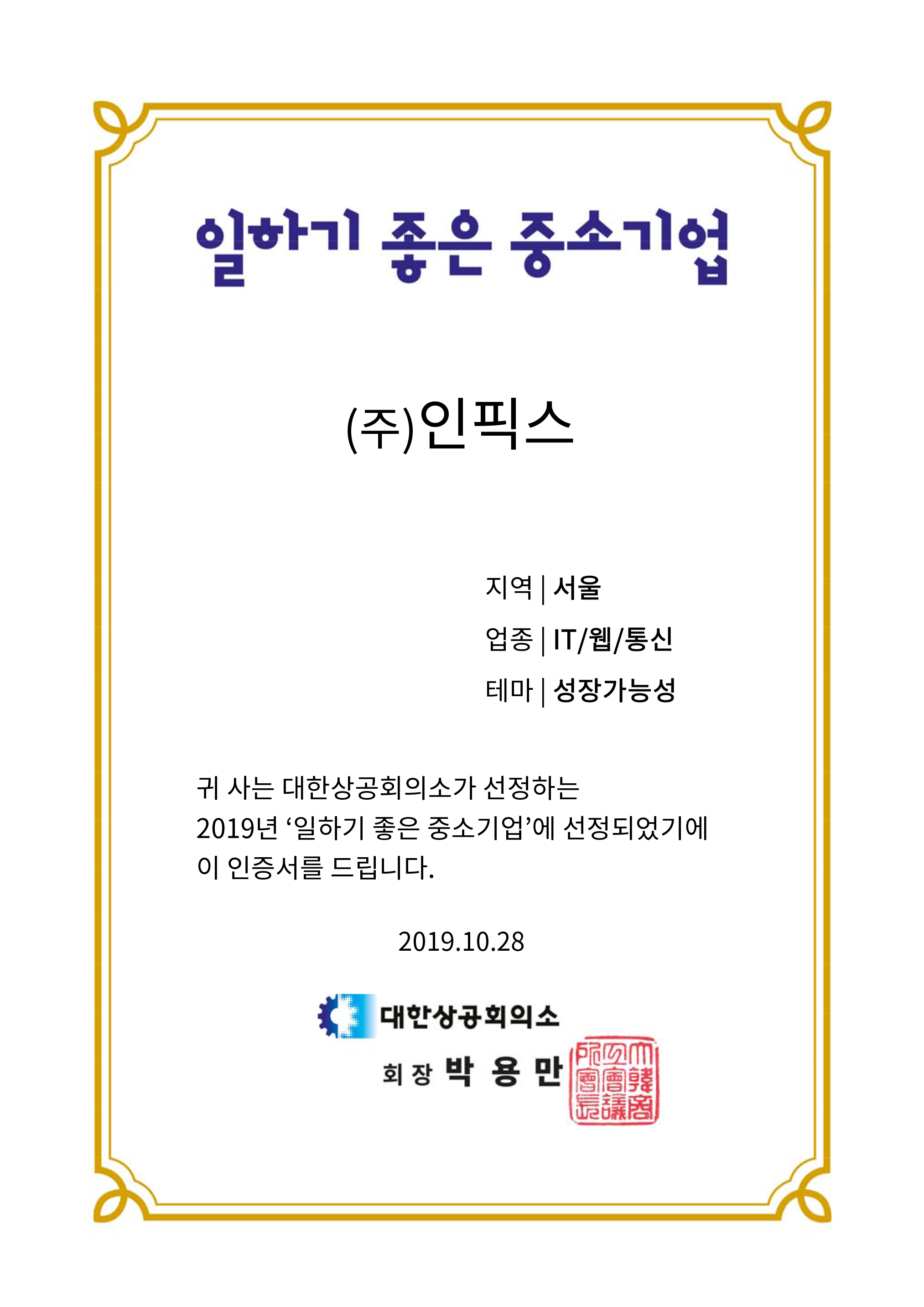 지난 하반기동안 인픽스가 세가지 인증을 받게 되었는데요 : )
