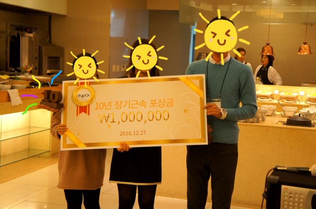 인픽스 10년 근속 트로피로 2016년 송년회 때