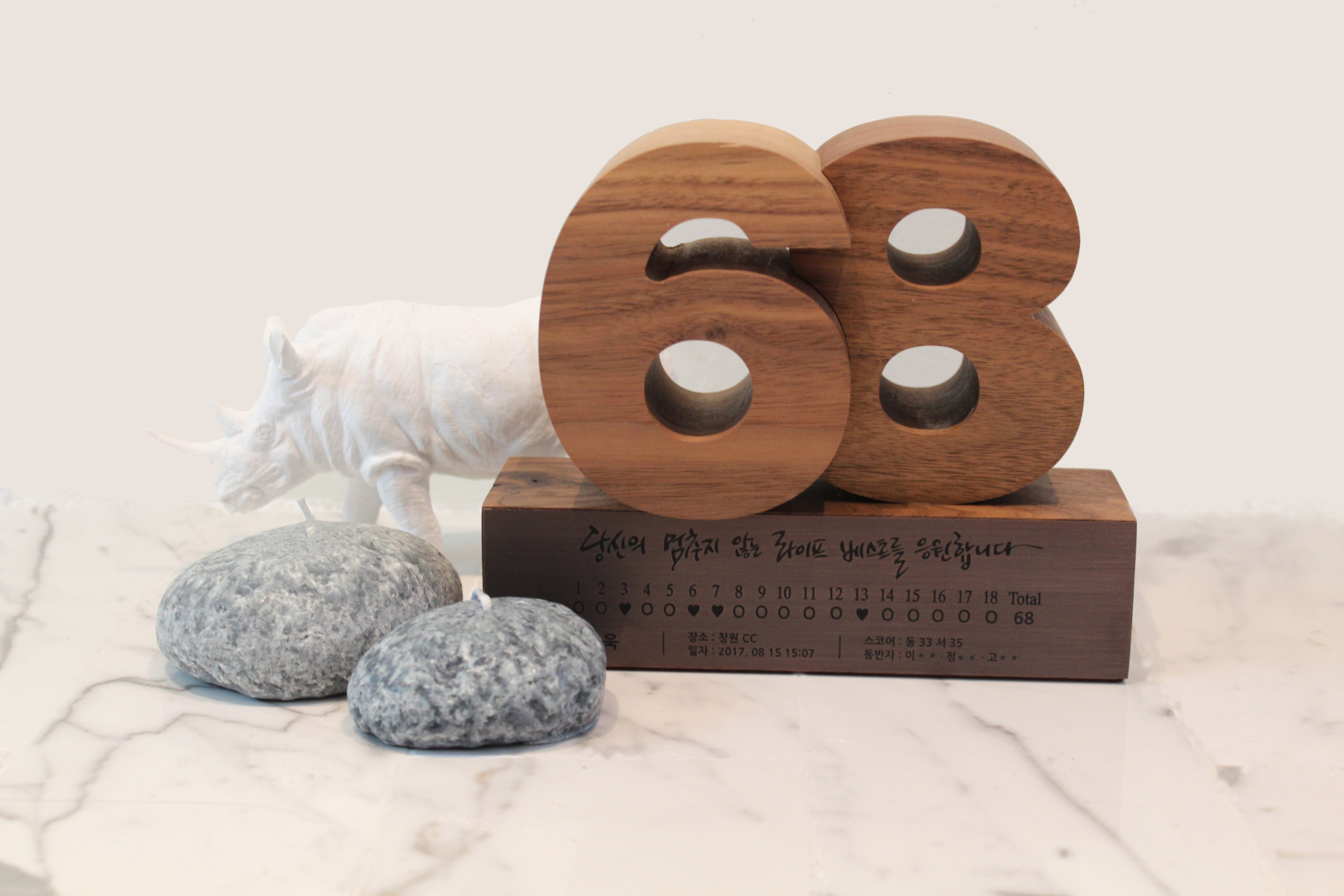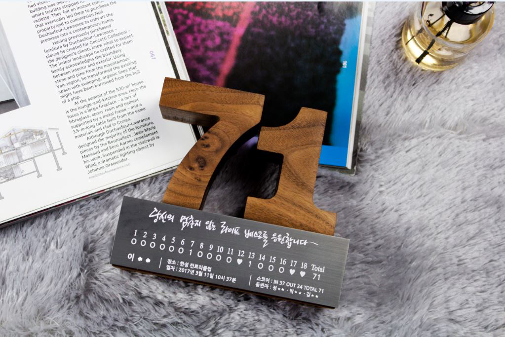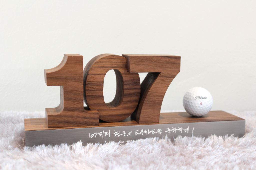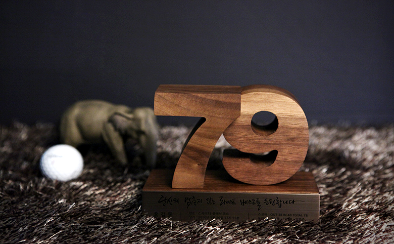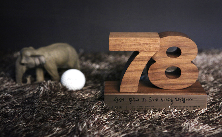 골프 트로피 같은 경우는 기록한 스코어를 숫자트로피로 제작하여 간직하기도 하구요~~