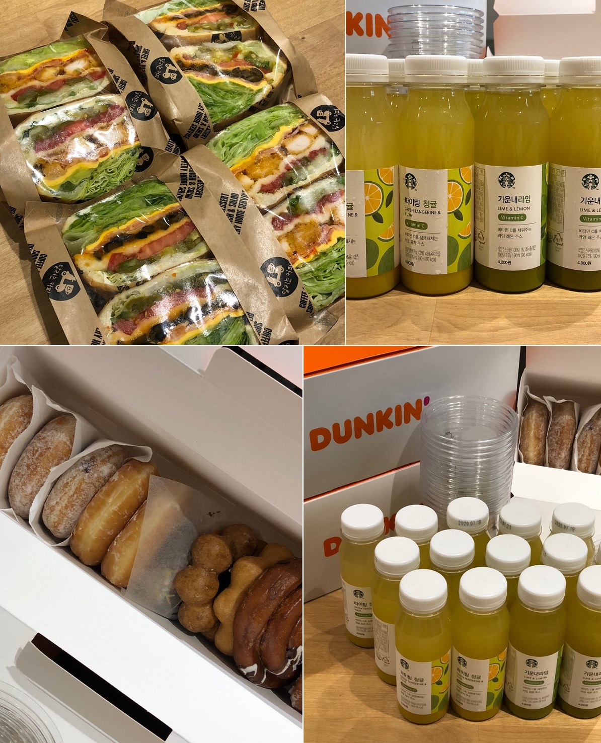 샌드위치부터 시원한 음료수, 그리고 간식으로 다양한 맛의 도넛까지 세트로 준비해보았어요 : ) !