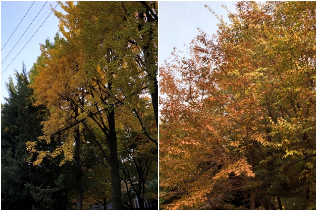 파란 하늘에 노랗게 물든 은행나무 조합은 가볍게 힐링할 수 있는 풍경이라고 생각합니다 ! *-*