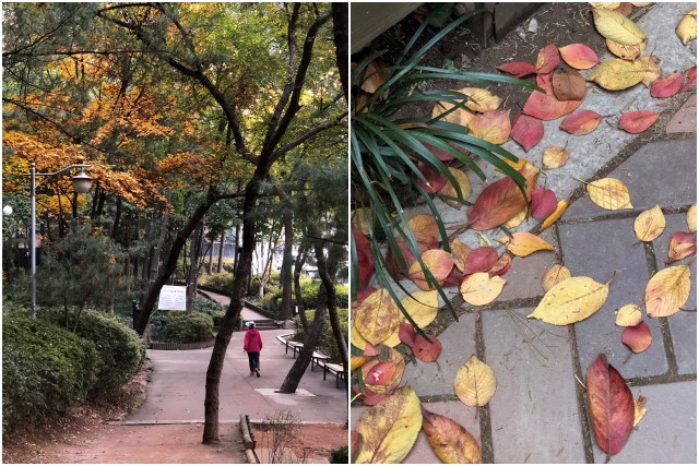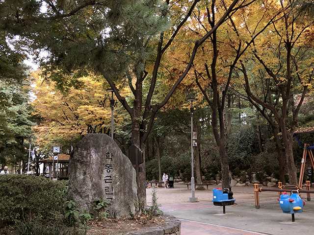 단풍이 가장 예쁘게 물들 시점이니 점심 식사 후 잠시나마 학동공원 산책을 추천 드리며