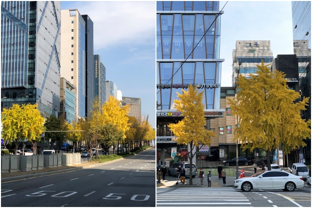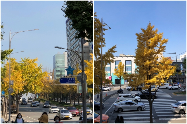 가로수길 앞 큰 길을 따라 서있는 노란 은행나무가 너무 예쁘더라구요 ㅎㅎ