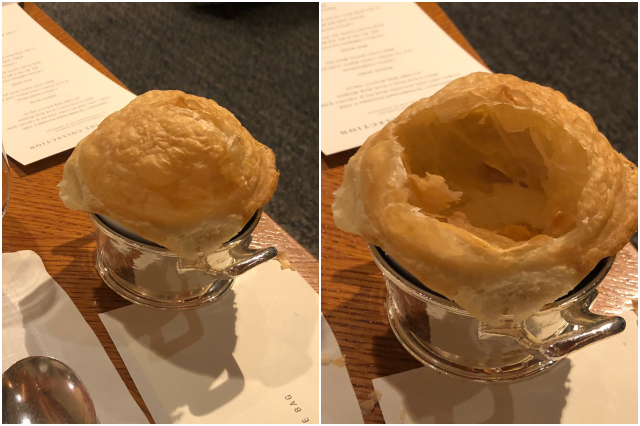 자리에 앉으면 인당 1개씩 스프를 주시는데요, 페스츄리가 올라간 트러플 향이 나는 양송이 스프였어요~