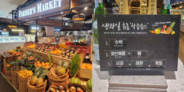 과일코너에서는 휴롬으로 만들어 주는 착즙 쥬스도 있었는데요~