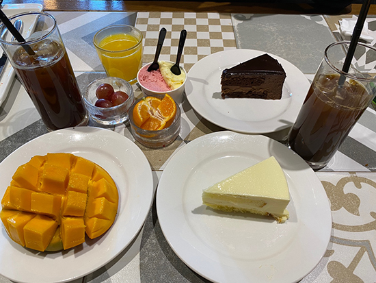 디저트에는 케익만 일곱 종류에 다양한 푸딩, 과일들까지.. 디저트를 좋아하는 제게는 천국같았어요 :D