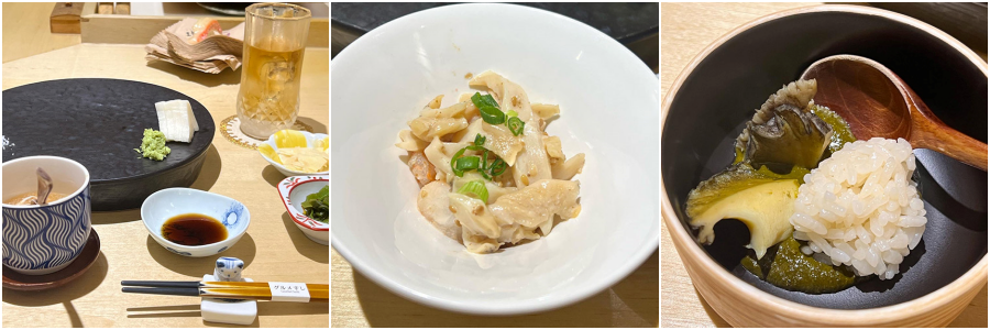 영동소금구이(100g)_17,000원 / 키조개관자+묵은지_11,000원