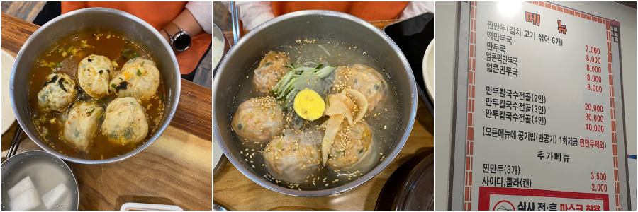 새우만두탕면 / 9,500원, 눈꽃고기만두 / 8,000원 (눈꽃고기만두 강추예요!)
