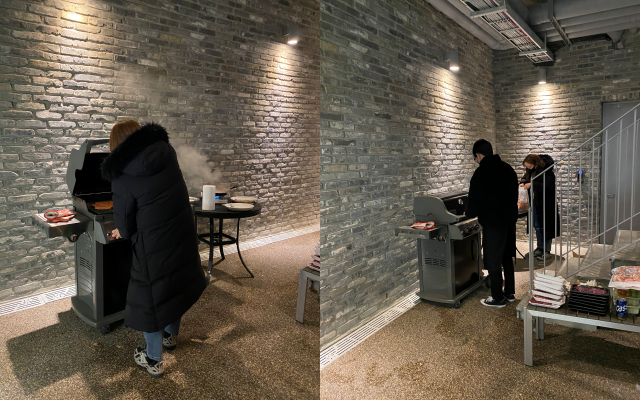 픽쓰데이가 시작되기 직전 고기와 소시지 그리고 새우를 구울 준비하고 있는 희정 대리님과 잘생긴 알바분 ㅎㅎ
