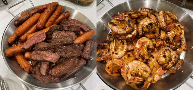 먼저 맛있게 익은 고기와 소시지 그리고 새우! 셋 다 기본 간이 되어있어서 그냥 먹어도 아주 맛있었답니다 : D