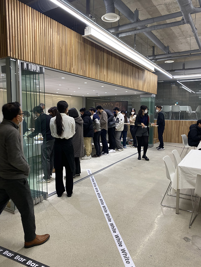 한 분씩 줄 서서 원하는 음식을 담는 모습들이에요 많은 분들이 와주셔서 뿌듯했답니다! ㅎㅎ