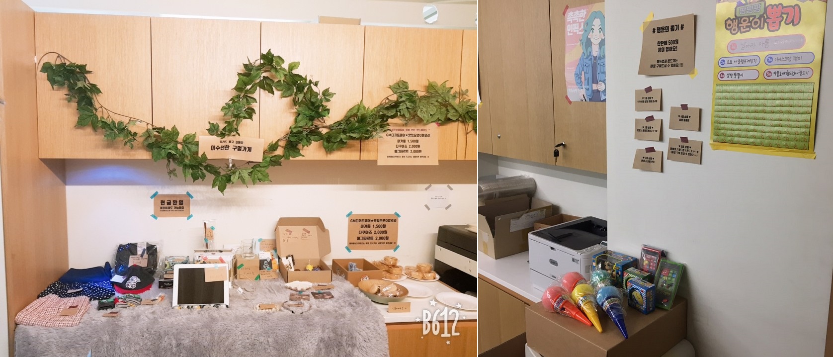 GM의 어수선한 구멍가게! 옷부터 소품, 액세서리, 윤부장님의 수제 디저트, 그리고 꽝 없는 뽑기까지 준비가 되어있어요.
