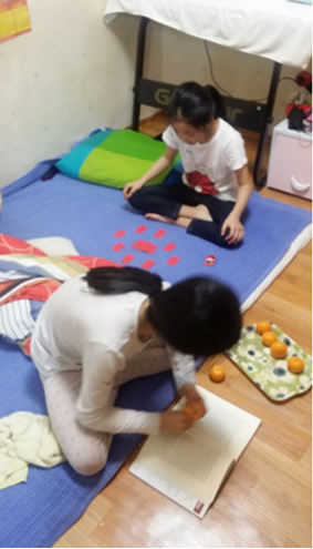 이제는 어엿하게 패를 뜨는 짤순이, 사촌언니는 책 읽는데...