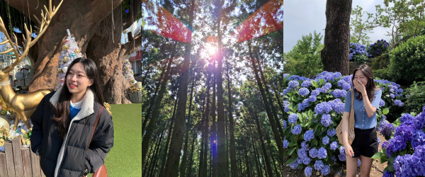 저는 초록색과 파란색을 좋아해요! 자연을 정말 좋아하는데, 자연이 품고 있는 색이 주로 초록색과 파란색이 많아서 그런 것 같아요. (옷도 파란 계열이 많아요!)
