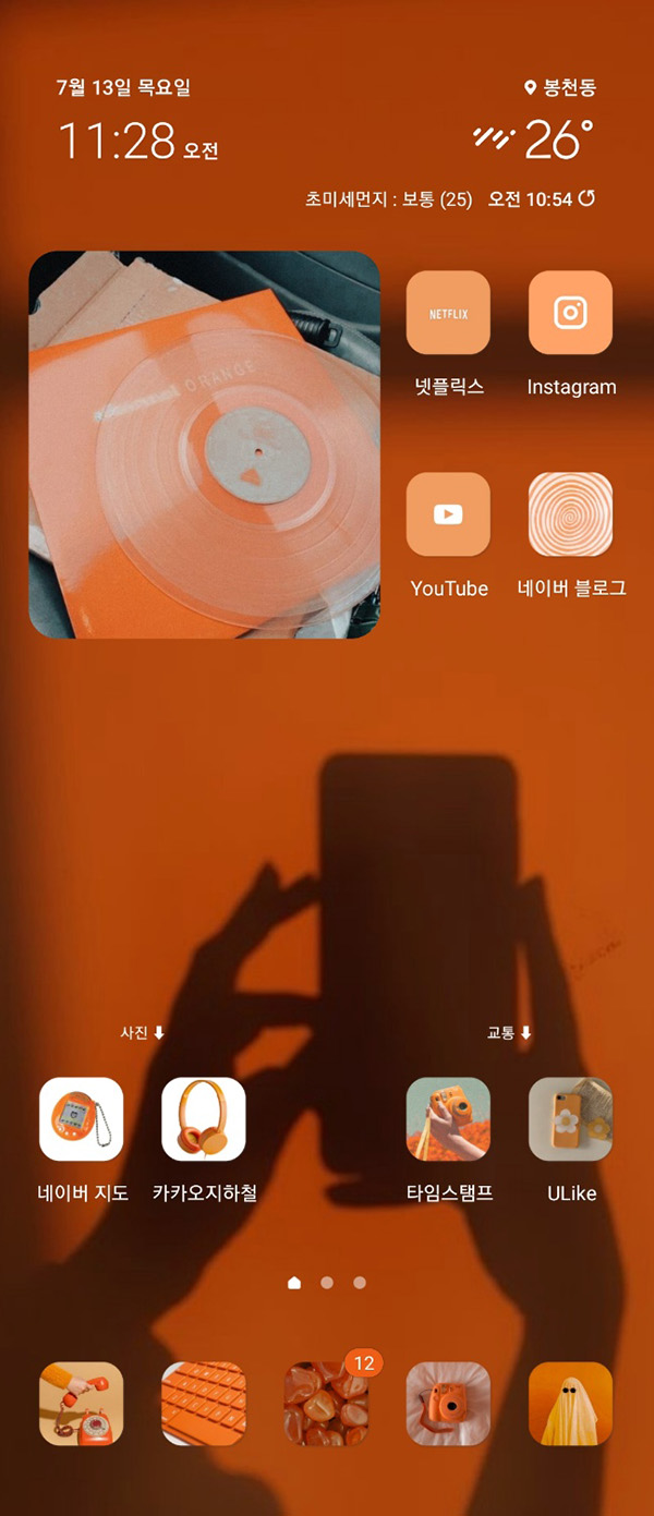 이번에 핸드폰 배경 화면을 온통 주황색으로 꾸며봤어요