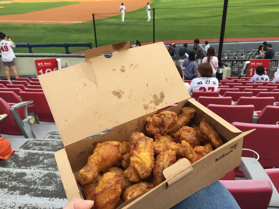 날씨 좋은 금요일 저녁 친구, 가족과 함께 야구장에 가서 좋아하는 팀의 경기를 직관하면서